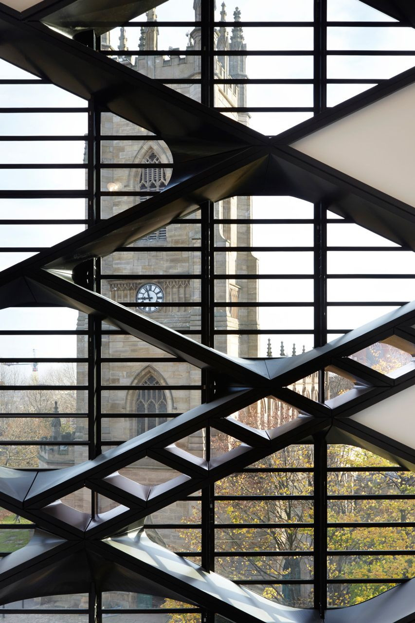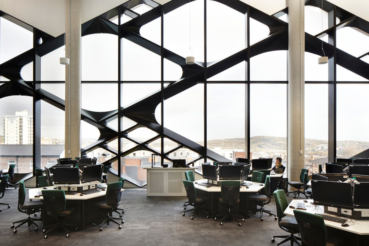 Autorem nové budovy pro technickou fakultu Univerzity v Sheffieldu je britské studio Twelve Architects & Masterplanners a společnost Sipral pro ni vytvořila unikátní fasádu, díky které se budově přezdívá The Diamond (česky Diamant).