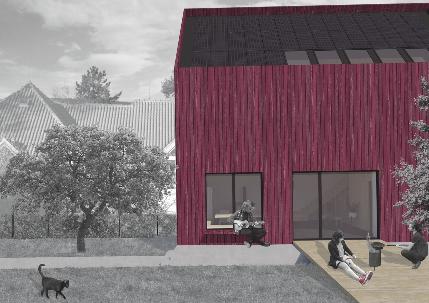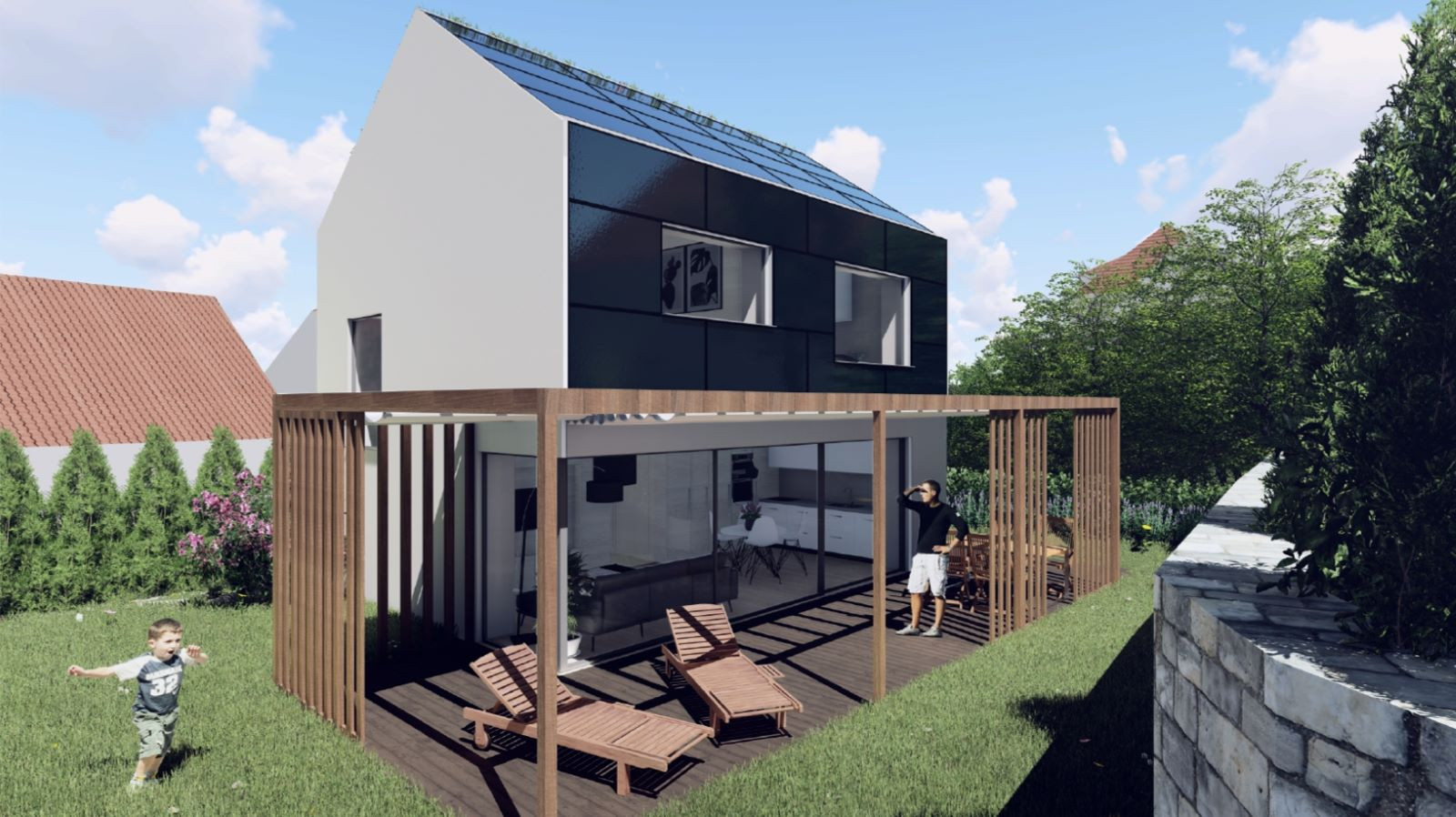 Vítězný návrh nabízí 106 m2 útulného domova už za 4 miliony korun. Tři čtvrtě roku navíc využívá vlastní elektřinu