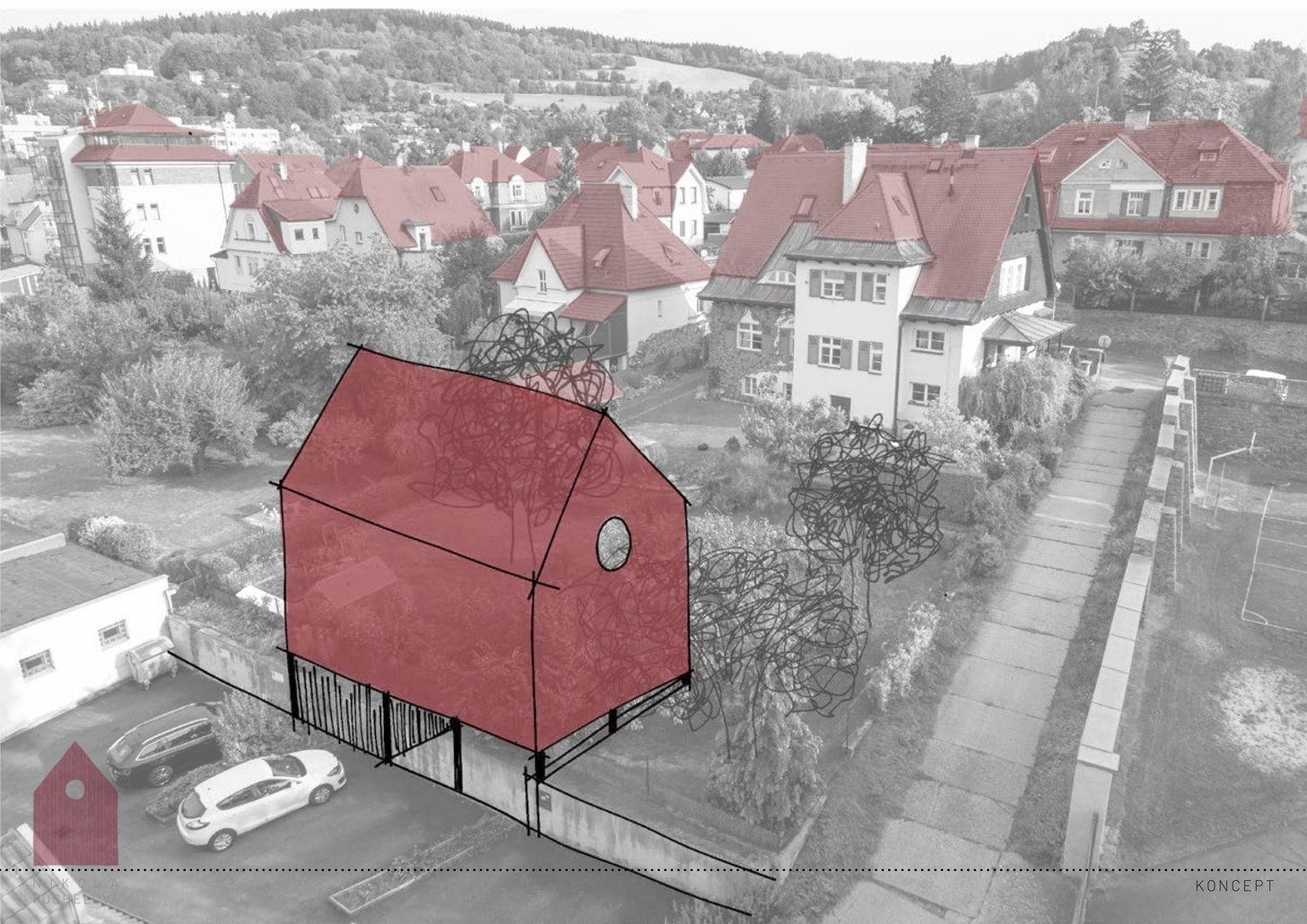 Studenti měli letos navrhnout využití konkrétního pozemku v Českém Krumlově, který má rozlohu pouhých 374 m2 a zastavitelnou plochu domu omezenou na 80 m2. Výška objektu nesměla překročit 2 nadzemní podlaží či 1 podlaží s podkrovím. Tedy častá situace, se kterou se potýkají mladé rodiny hledající vhodné místo k bydlení.