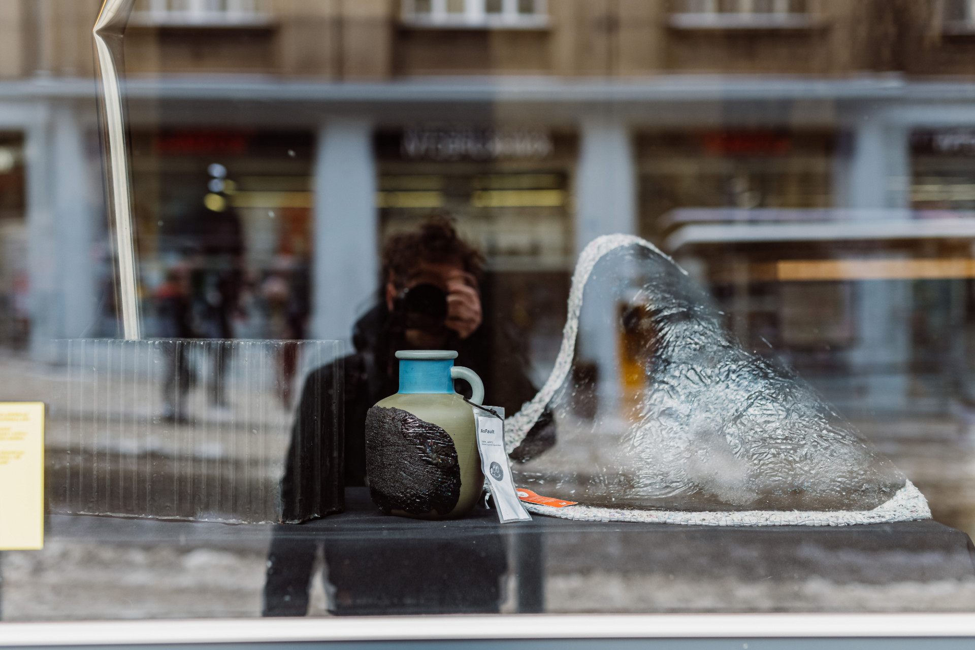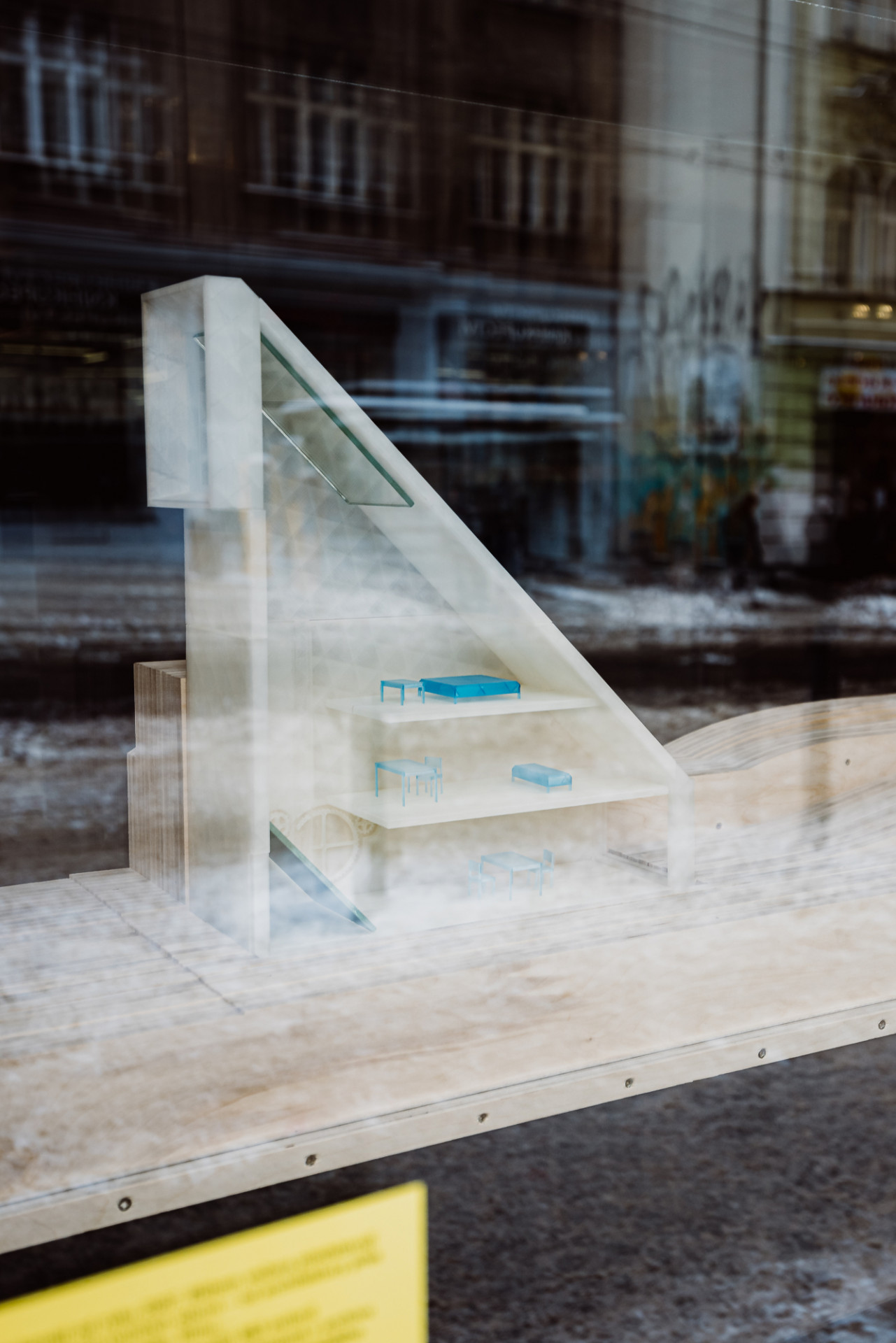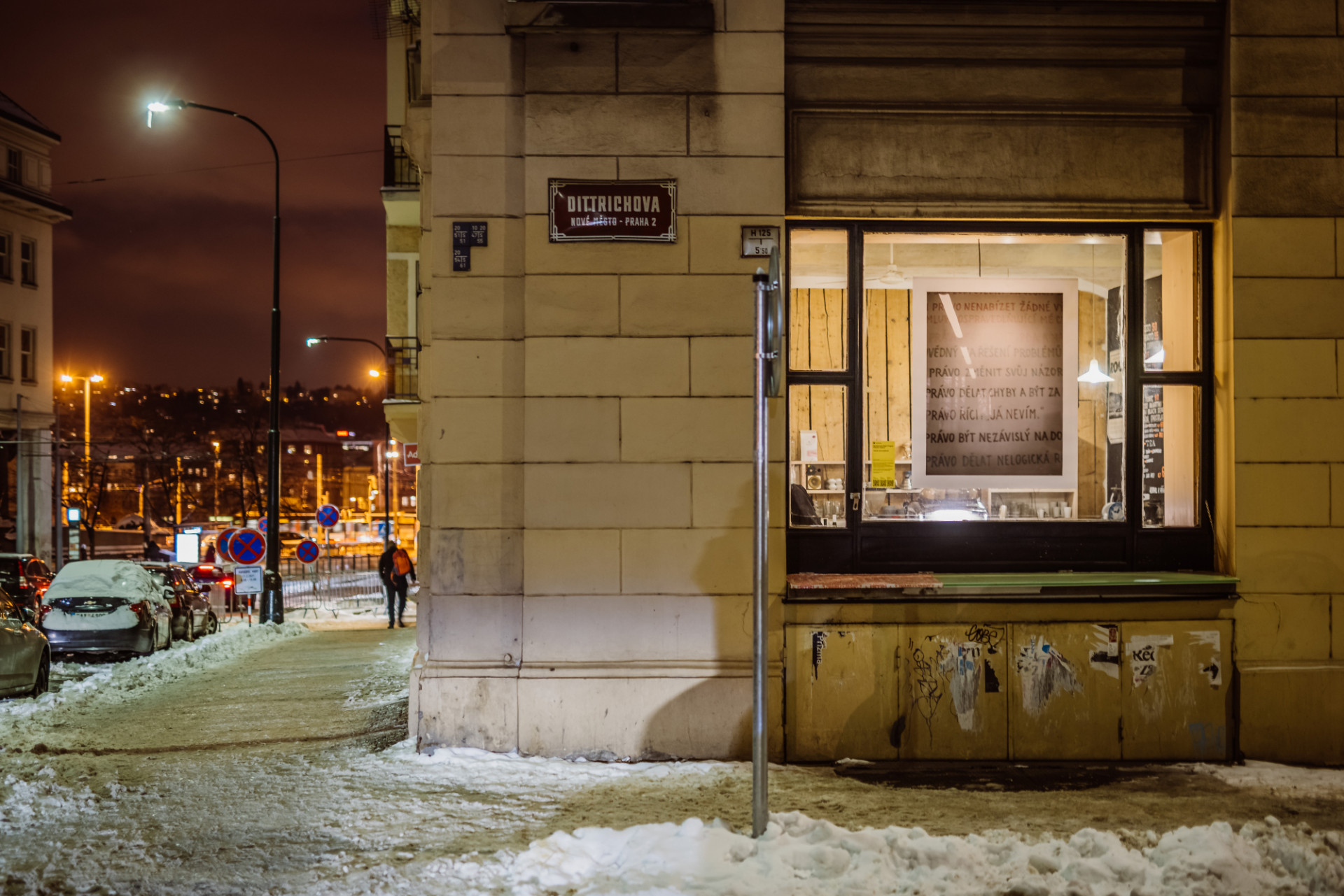 Z výloh zavřených pražských kaváren galerie. Projekt představuje díla českých designérů, malířů a sochařů